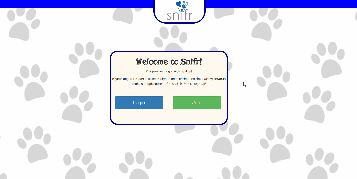 Our application snifr is a dating app for dogs. The idea is that a owner can create themselves a profile and add